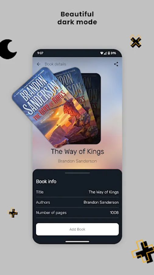 Scan any book with an ISBN into Luna to instantly see all the available information about it. You can add it to any of your reading lists and start tracking your stats on it right away. As soon as you pick up a new book, all you have to do is scan it and you're done!