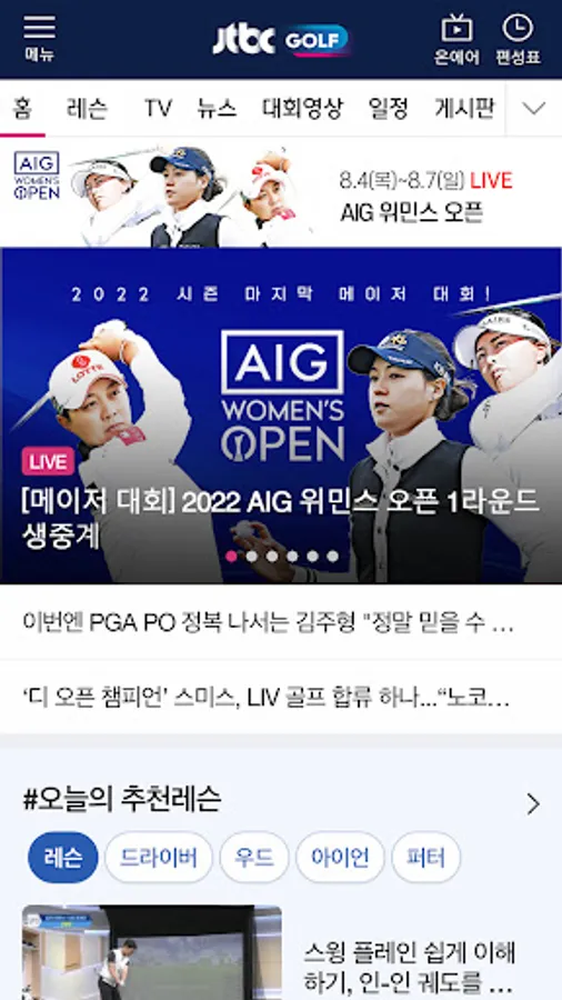 Through the on-air service, you can watch the JTBC golf channel live anytime, anywhere.