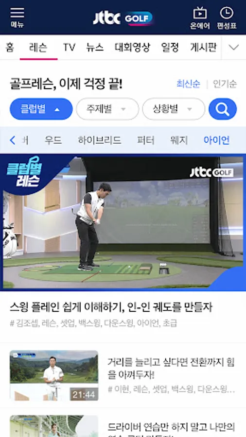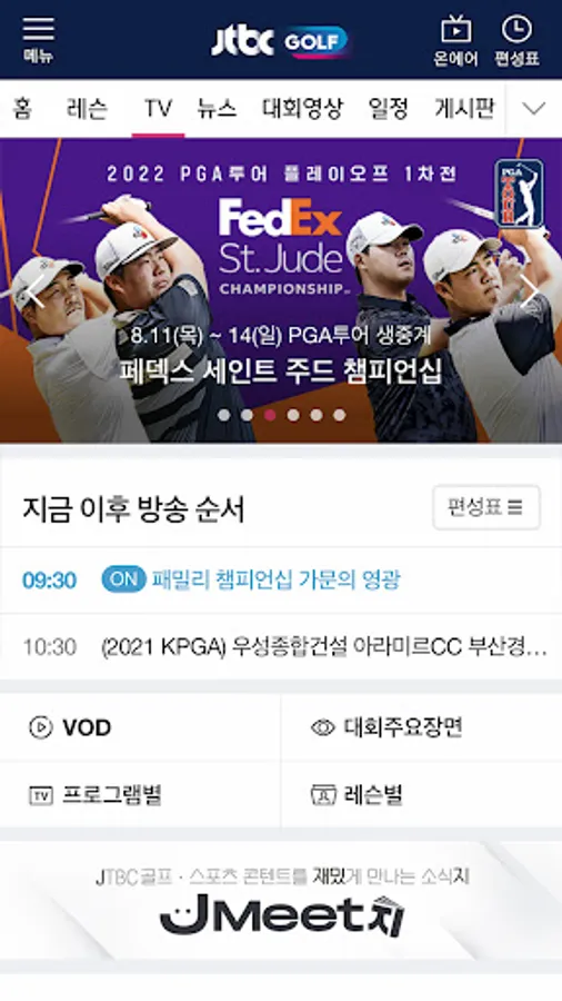 Provides a replay function for all programs of JTBC Golf. From general programs to 'colorful sights' tour games! For those who missed the LPGA, PGA Tour, and domestic major live broadcasts, you can see clips/highlights.