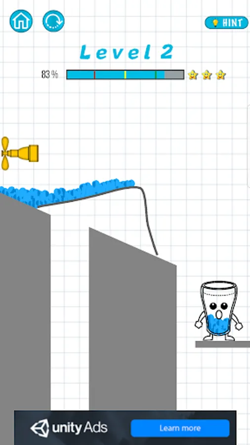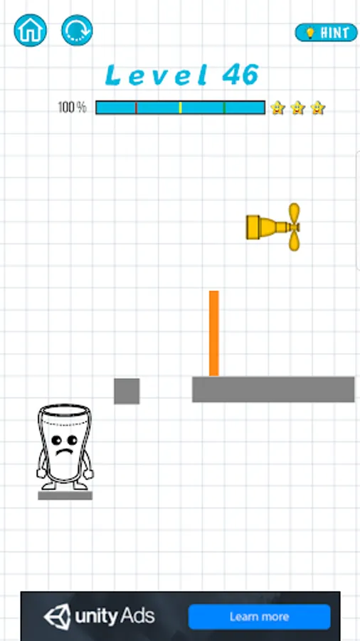 Be Smile Water Glass is an entertaining style drawing game, it helps you train your thought as well as creativity. In the game, the glass needs water. We need to provide a connection between the tap and the glass. All you need to do is to use your intelligence to draw the lines to fill the glass with water and once the glass is full it makes it become a happy glass, then, you move to another level and you are close to finishing the game.