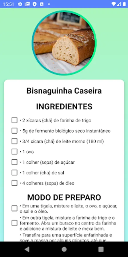 This is a bread recipe app for your day-to-day, recipes of up to 3 ingredients so you don't take too much of your time, making it easy and practical!
