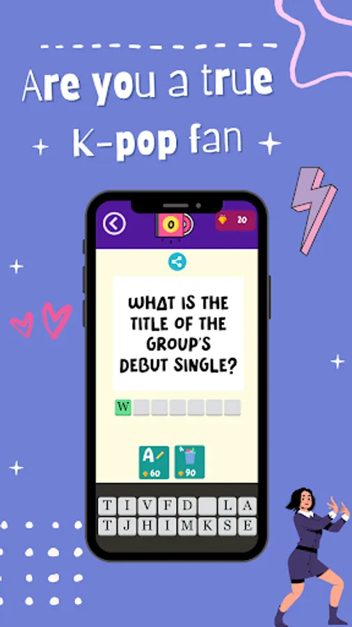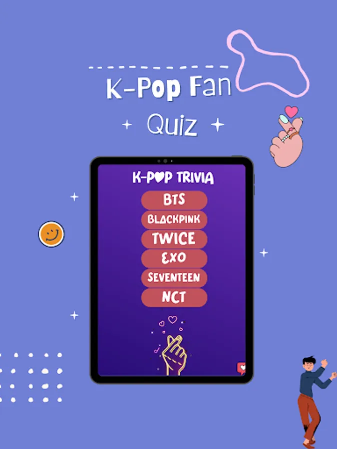 Are you a true kpop fan! Test your trivia knowledge of K-pop bands with this Kpop Quiz game. Including k-pop groups BTS, BLACKPINK, Twice, Exo, Seventeen, NCT, and more coming in future updates.