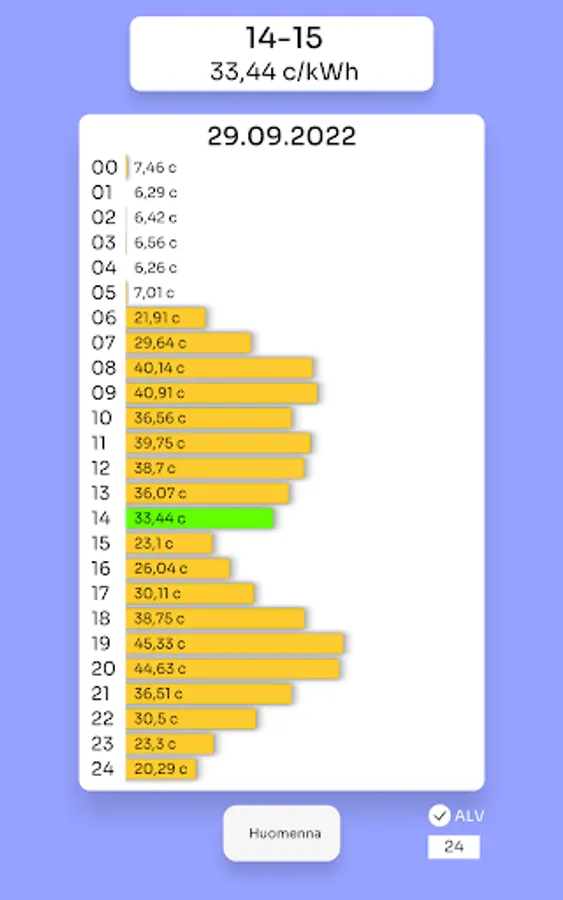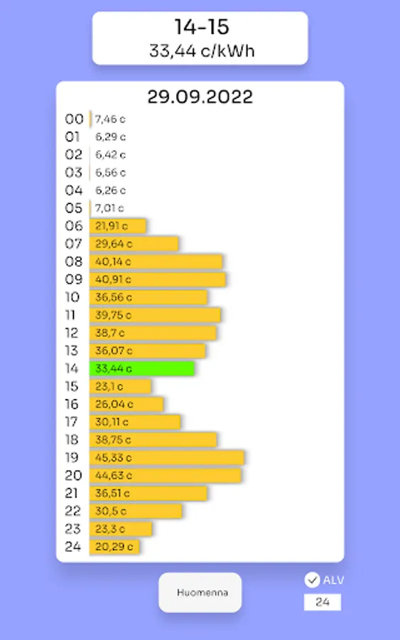 With this app, you can easily monitor the hourly price of electricity in EU countries.