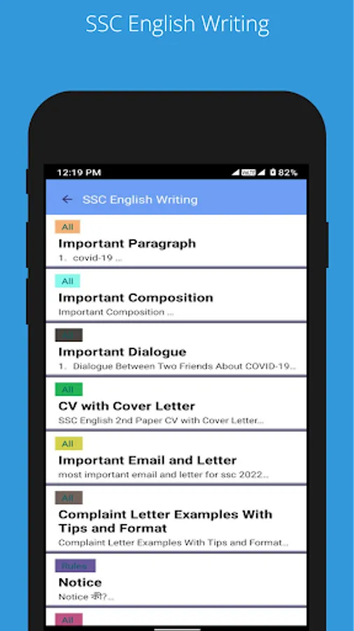 SSC English Grammar Exercise App is an app of Writing section for SSC Level students. All-important writing part of SSC level Students are included in the SSC English Grammar App.