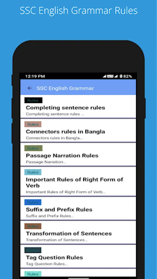 SSC English Grammar Exercise App is a totally offline app. Containing SSC English Grammar Rules and Exercise from Board Questions with answer sheet.