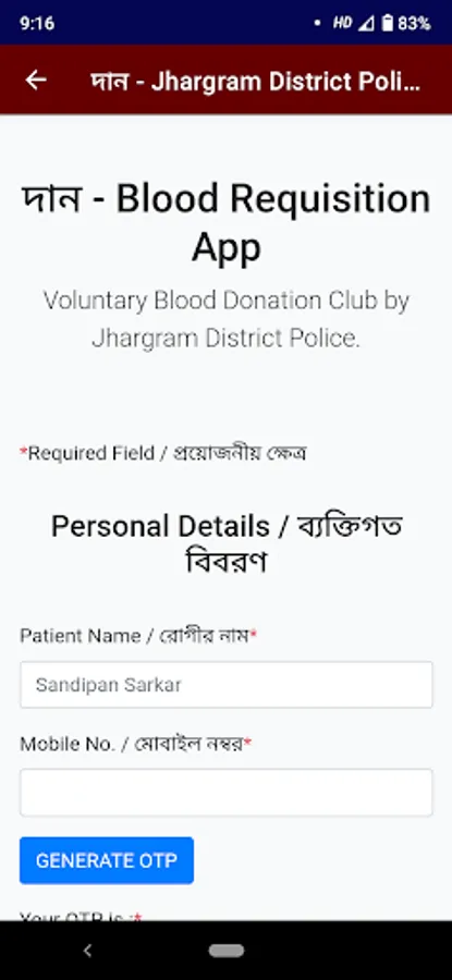 Daan is an app where anybody in need of blood in Jhargram District, can reach out to us via this app. This is a voluntary blood donation club by Jhargram District Police.