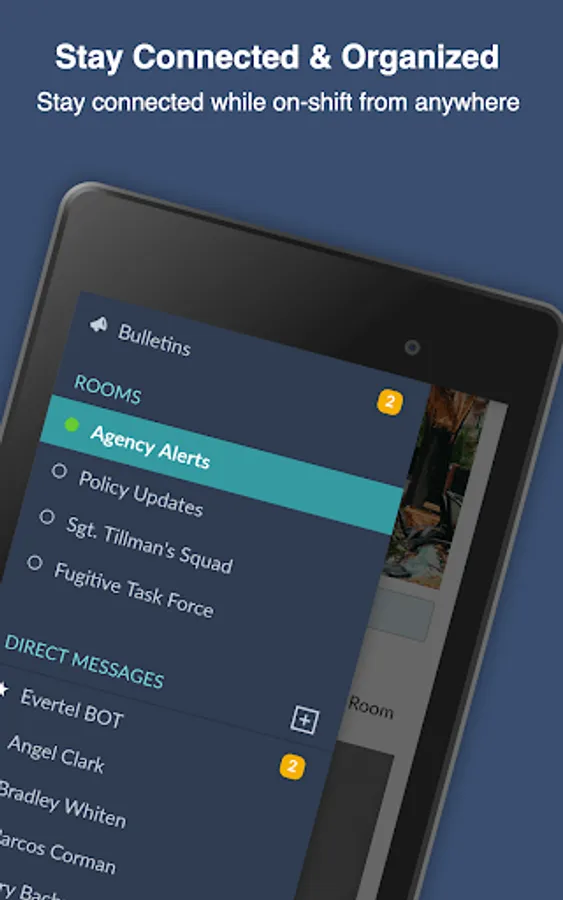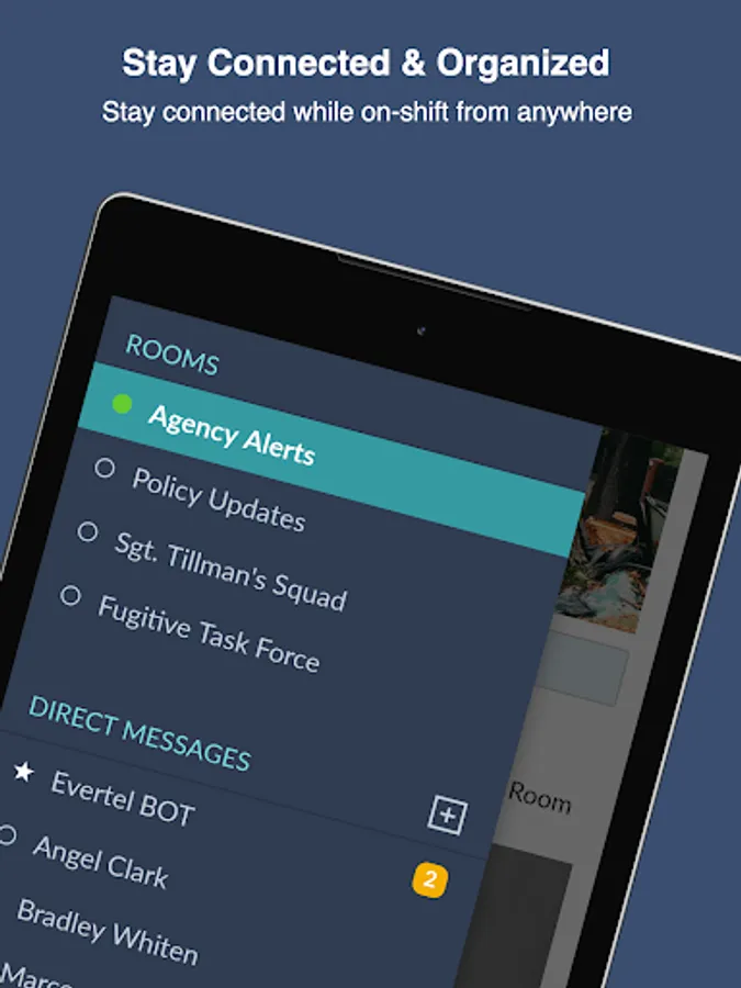 Evertel provides a FIOA, CJIS, HIPAA and State compliant communications and team collaboration platform for 1st Responders and Government. Evertel greatly enhances agency communications with voice, chat, messaging, video and images allowing you to share critical information and receive agency-wide updates and collaborate with your team(s): all in a secure, real-time environment.