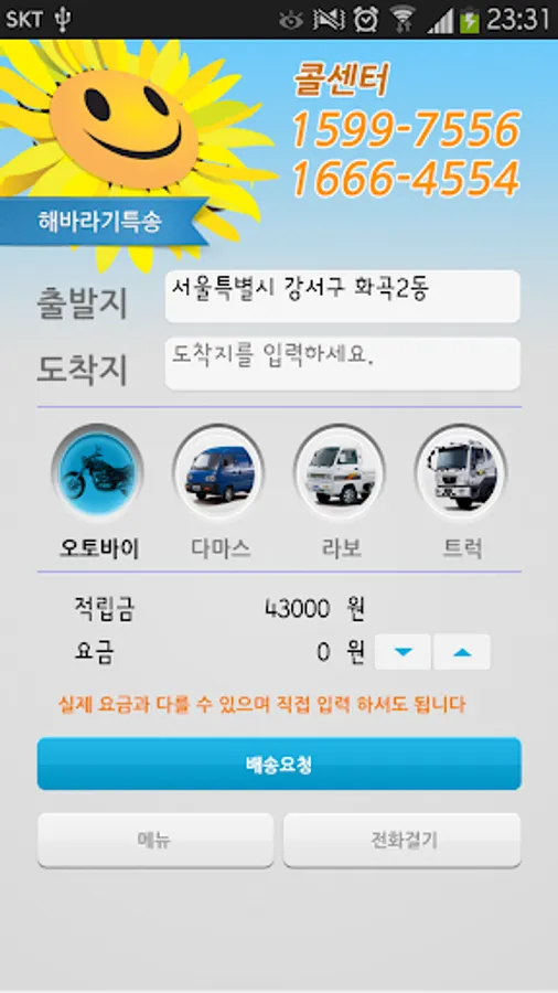 2.지역특성상 맞지 않는 요금은 고객님께서 조정 하여 보내실 수 있습니다