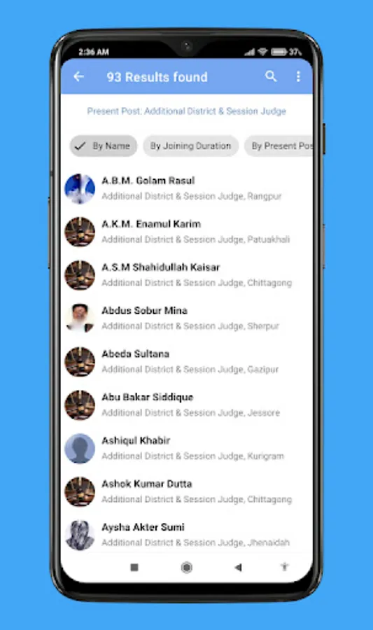 sorted by Work Place/District, Designation, Present post etc
