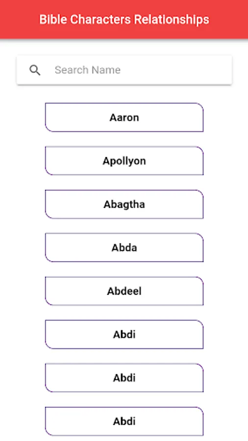 This app is arranged in alphabetical order from A to Z and incorporates a search engine to facilitate the search of hundreds of biblical characters.