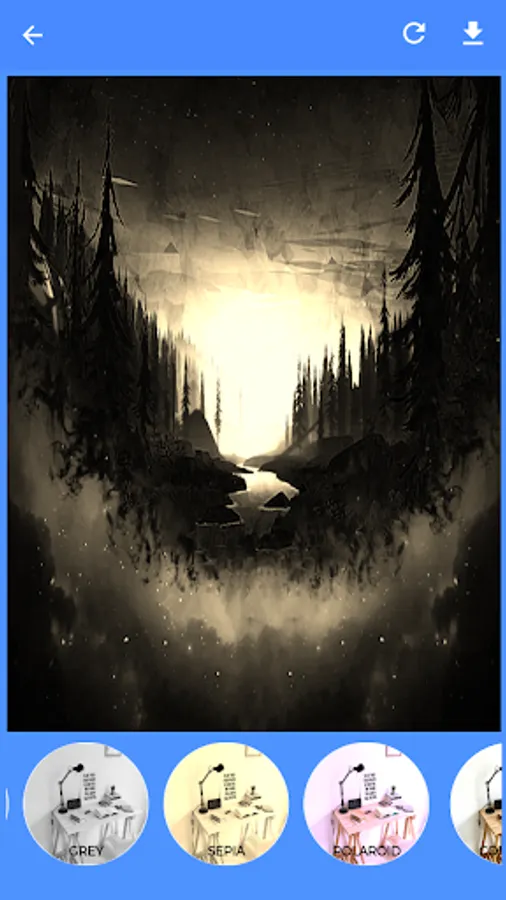 Simple Photo Image Filters. Sepia, Blue monotone, Violent tomato, Grey, Brightness, Saturation, Contrast, Hue, Cookie, Vintage, Koda, Technicolor, Polaroid, Bgr