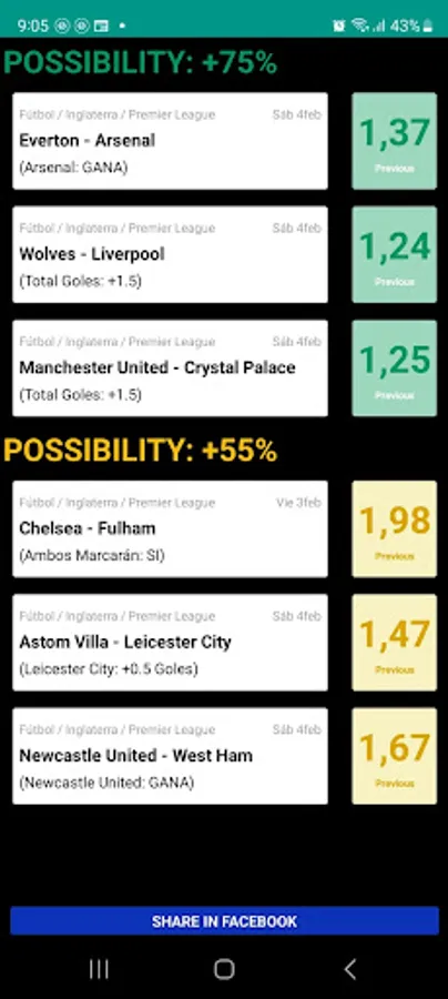 With this application you will be able to see recommendations for placing bets on different sporting events
