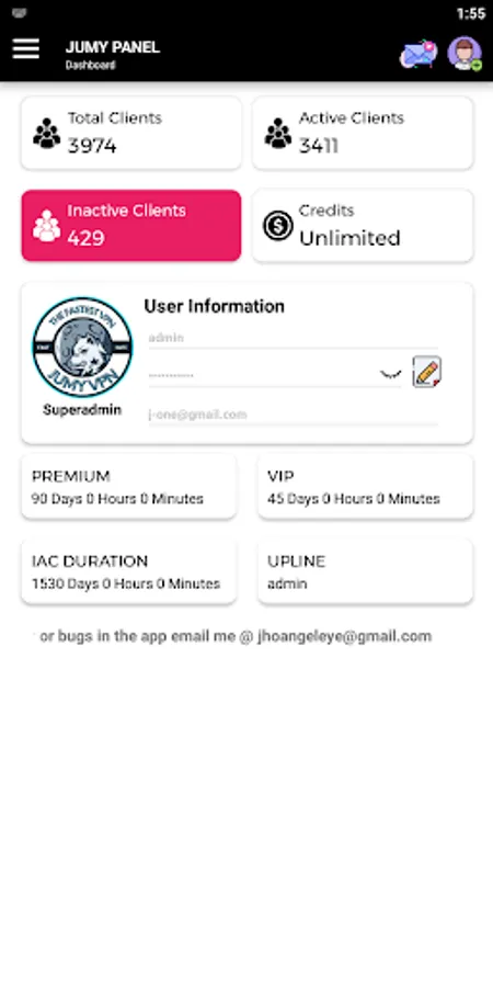 JUMY PANEL is an app made to manage users in JUMY VPN
