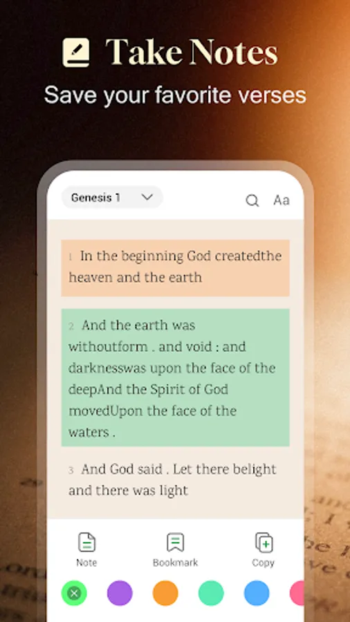Capture your thoughts and reflections while reading the Bible. Attach notes to multiple verses for future reference.