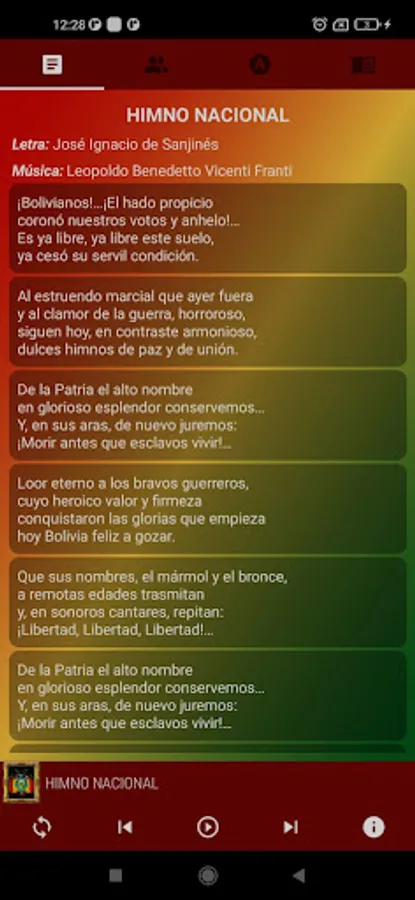 In this songbook you will find: Lyrics, Vocabulary, Bibliography of the Authors, Historical review of each hymn, song or march. (does not include audio).