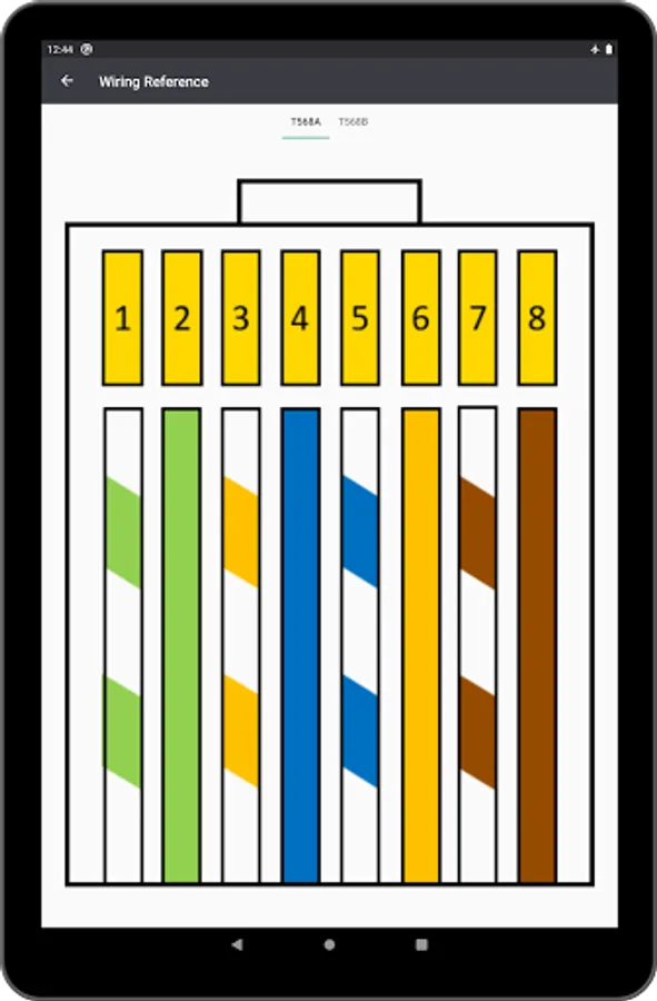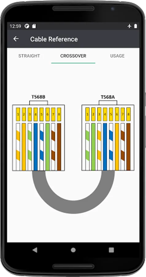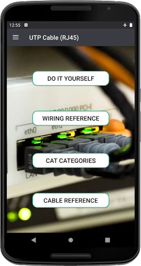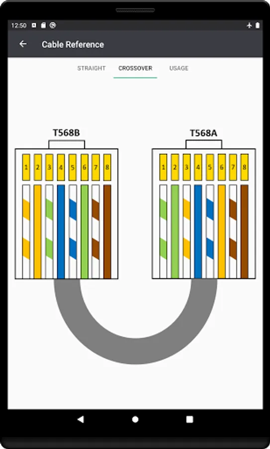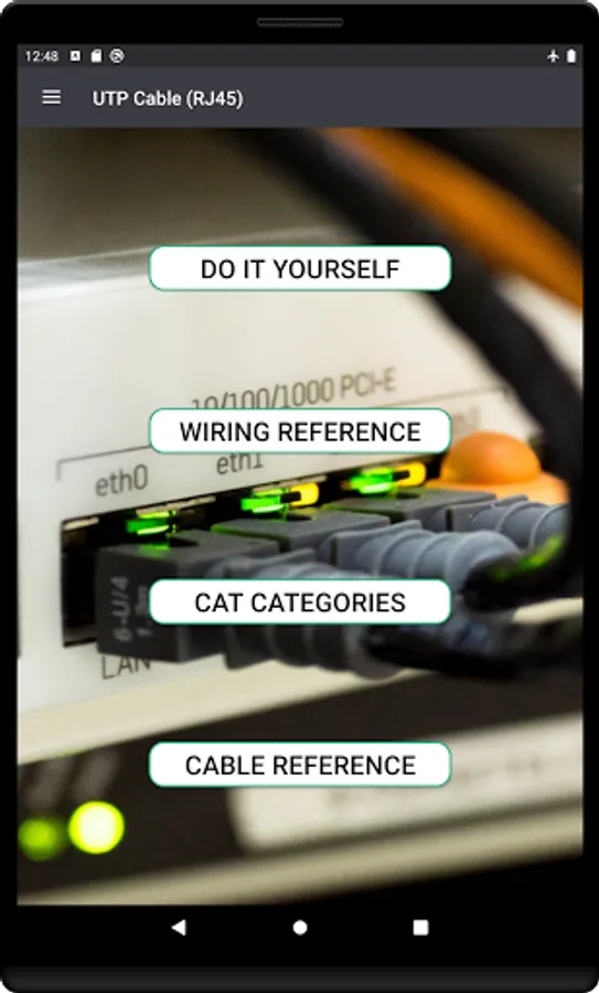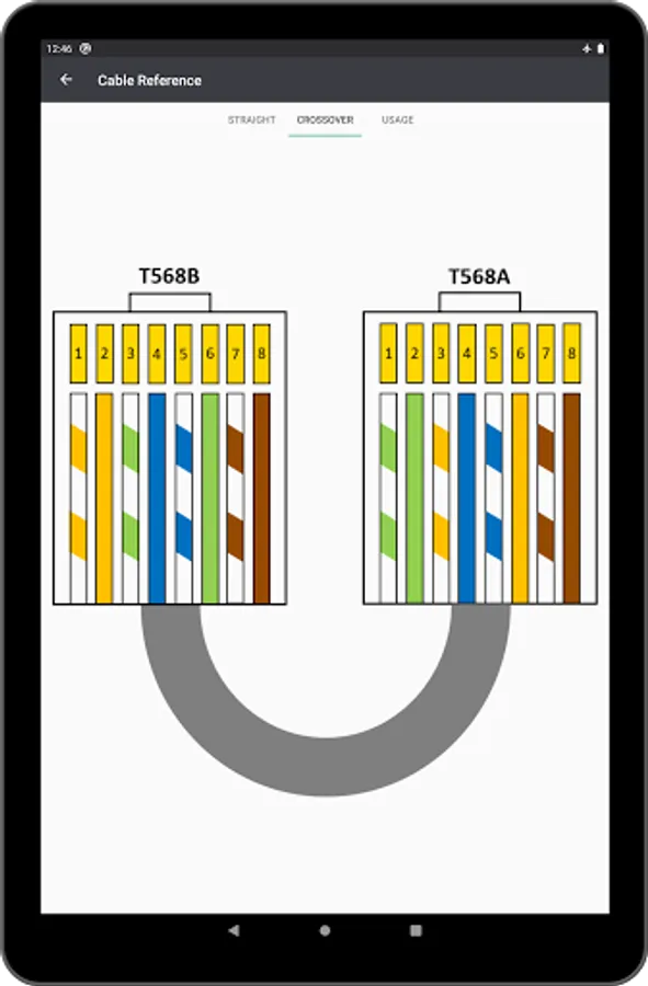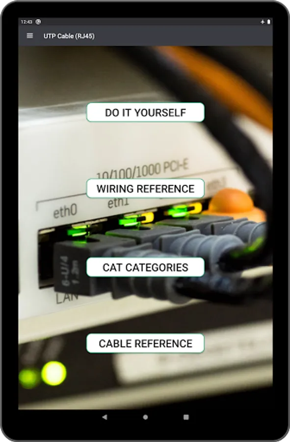 The UTP Cable app can be used for reference and/or education and is divided in four parts: