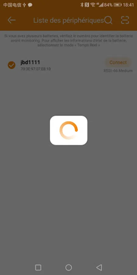 2) The app detects and lists your battery(ies) remotely. Find and connect/disconnect to your batteries by looking for them in the "List of devices" tab