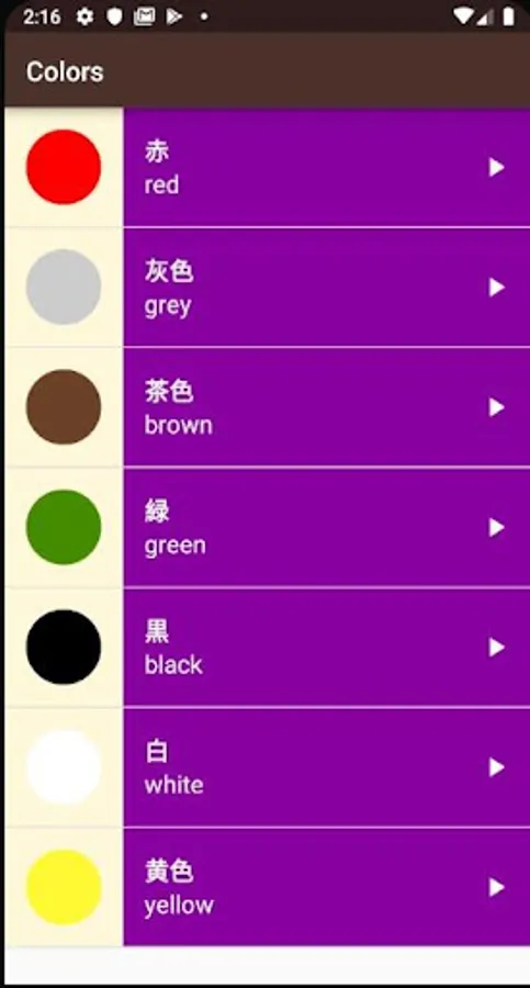 This app teaches Japanese vocabulary from different categories, featuring helpful visuals and voice recordings by Japanese speaker Kohki higashitani.