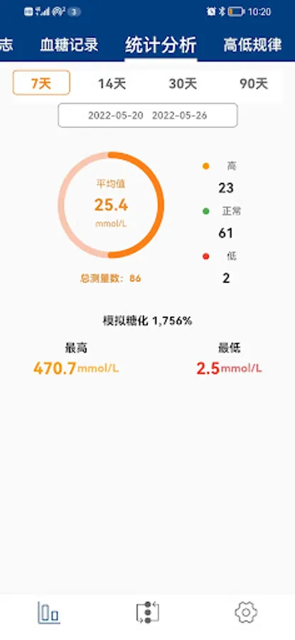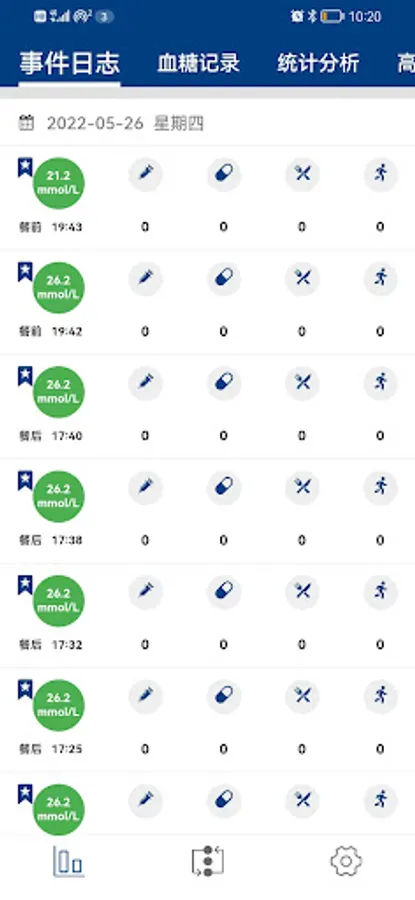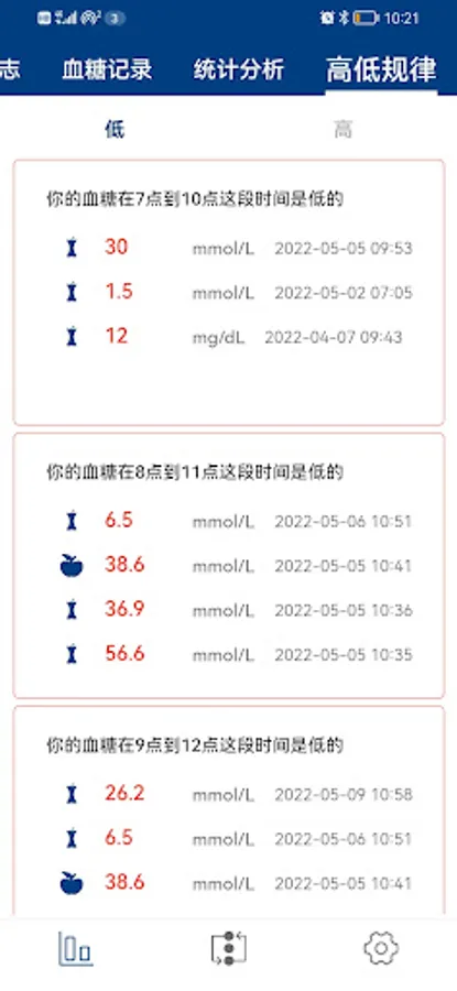 The blood glucose meter Android app contains BG Log, BG table, Patterns。