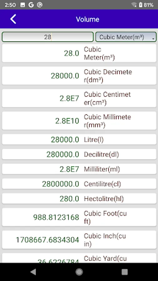 Volume: cubic meters, liters, cubic inches, imperial gallons, etc.