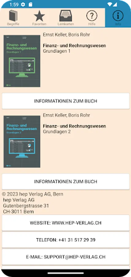 This app from the hep publishing house is based on the teaching materials "Finance and Accounting Basis 1 and 2" by Ernst Keller and Boris Rohr. It contains the definitions of the most important terms - arranged alphabetically or according to the chapters. The terms can be learned and repeated with digital flashcards.