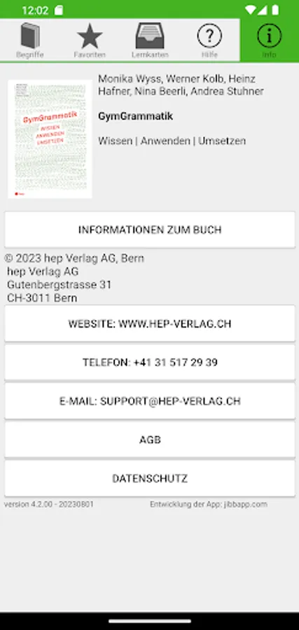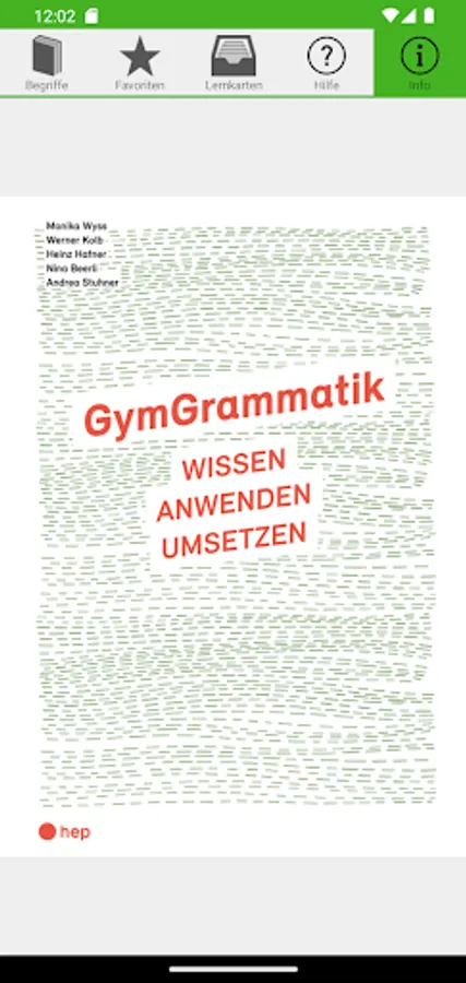 This app is based on the teaching material "GymGrammatik" by Monika Wyss, Werner Kolb, Heinz Hafner, Nina Beerli, Andrea Stuhner from the hep publisher. It contains all the definitions in the glossary in the book - sorted alphabetically or by the chapters.