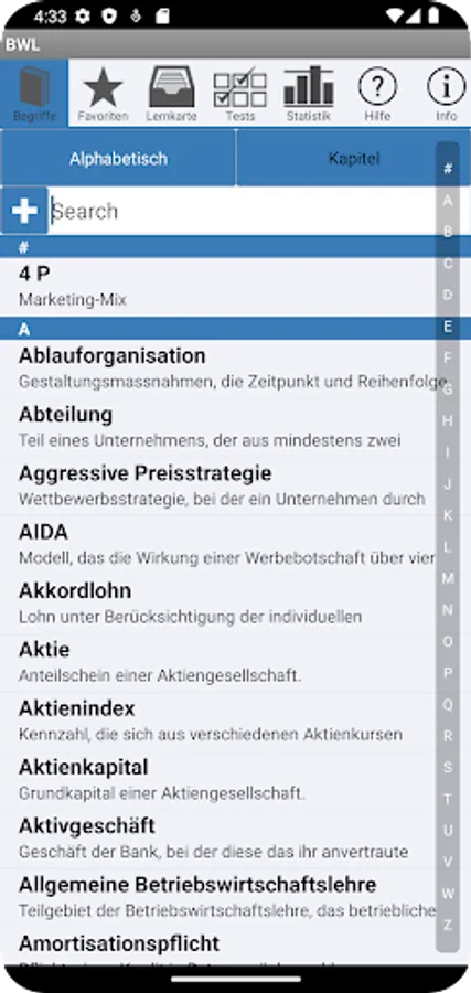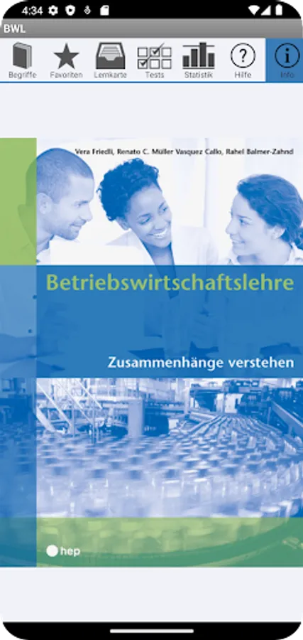 This app is based on the teaching aid "Business Administration" by Vera Friedli, Renato C. Müller Vasquez Callo and Rahel Balmer-Zahnd from hep Verlag. It contains all the definitions of terms in the glossary from the book - arranged alphabetically or according to the chapters, as well as additional links to the Internet.
