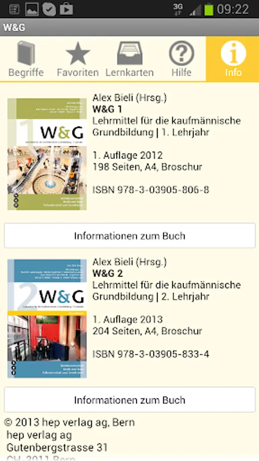 This app from the publisher hep based on the teaching materials "W & G 1", "W & G 2" and "W & G 3" by Alex Bieli (eds.). It contains the definitions of the key terms - sorted alphabetically or by chapters. With digital flashcards concepts can be learned and repeats.