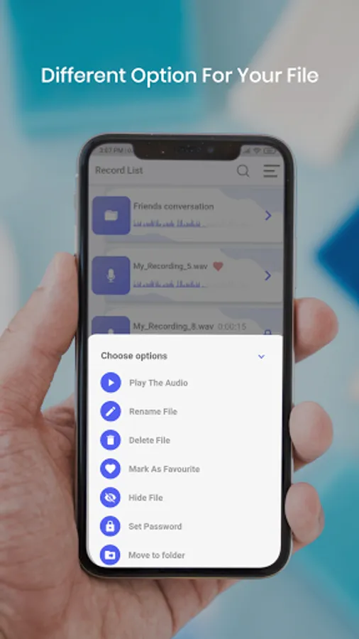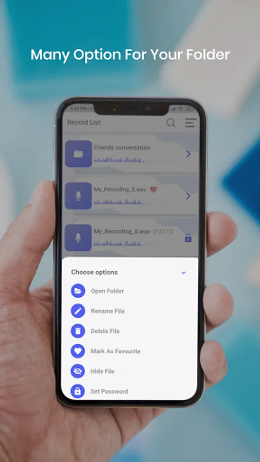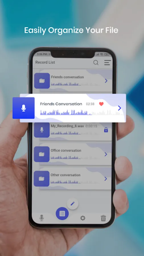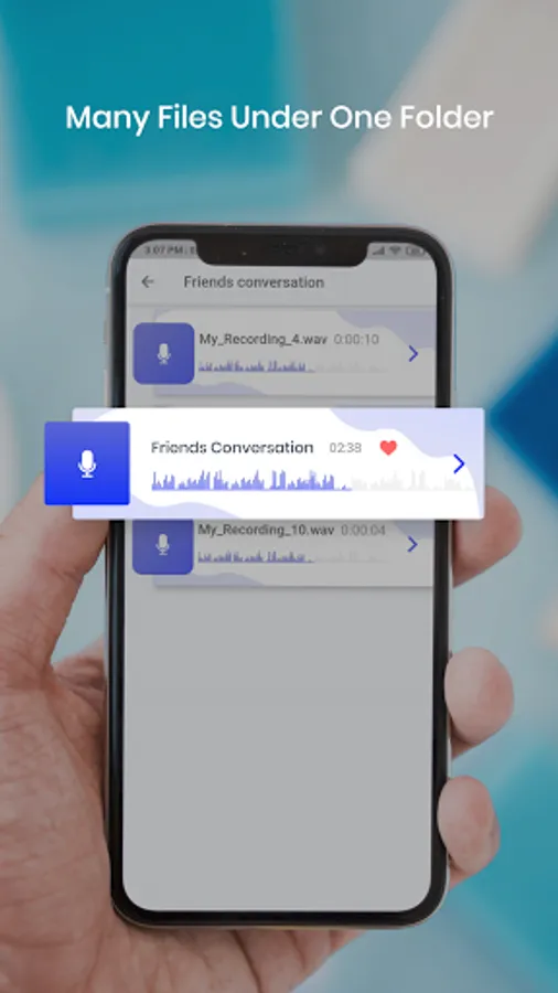 High-quality recording with space savings. Share recordings easily through email or your favorite app or you can set one of them as a ringtone.