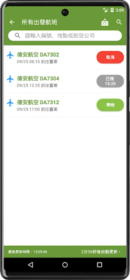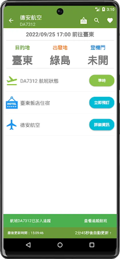 Support the real-time status tracking and query of flights at Green Island Airport (Green Island Airport)