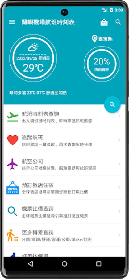 Supports real-time status tracking of flights at Lanyu Airport (Lanyu Airport)