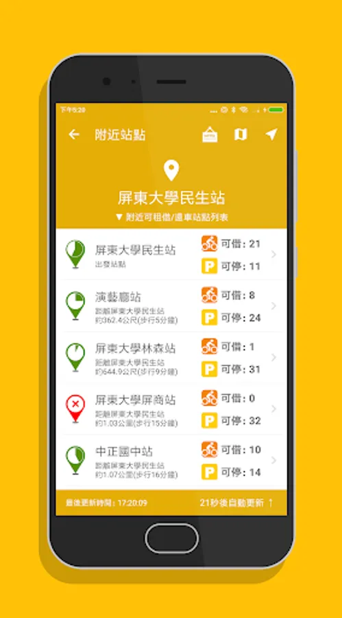 Nearby Stops - Quickly find a list of nearby rental and drop-off stations!
