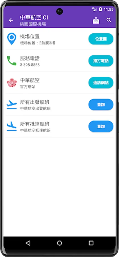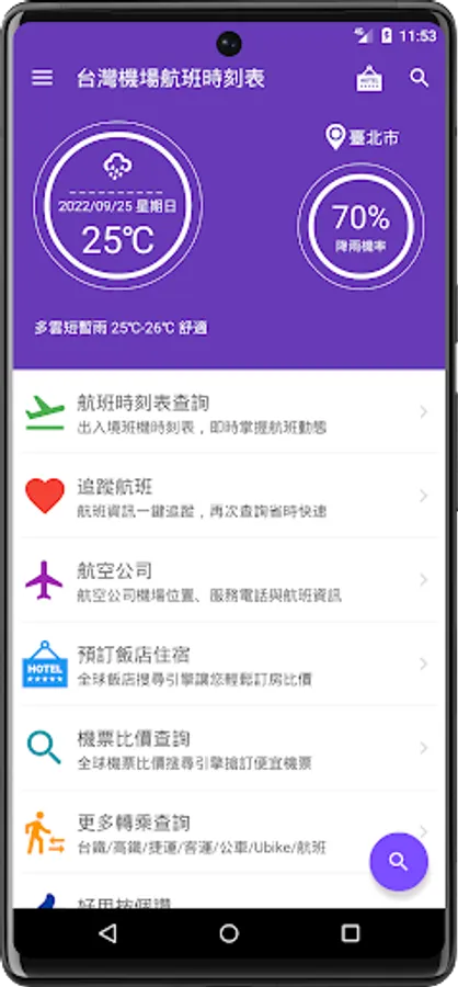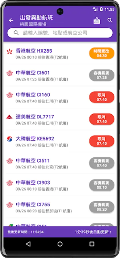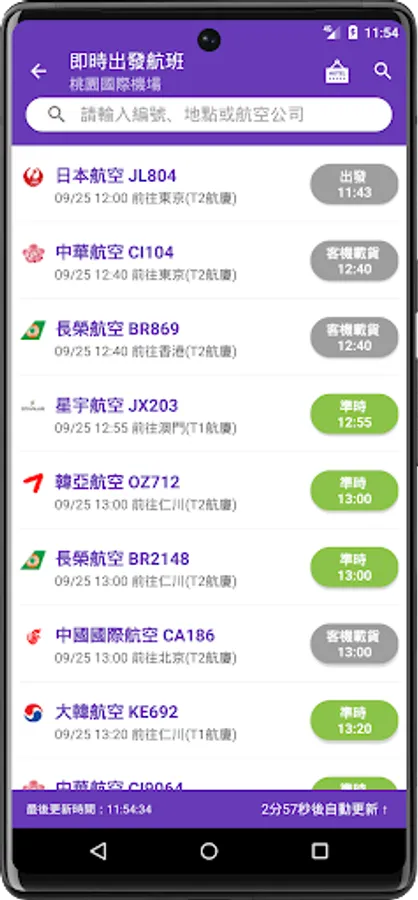 Support Taoyuan International Airport / Kaohsiung International Airport / Taipei Songshan Airport / Taichung International Airport / Penghu Magong Airport / Kinmen Airport / Tainan Airport / Taitung Airport / Matsu Airport / Hualien Airport / Matsu Beigan Airport / Matsu Nangan Airport / Chiayi Airport / Lanzhou Real-time status tracking and query of flight status at all Taiwan airports such as Yuyu Airport/Green Island Airport/Penghu Qimei Airport/Penghu Wangan Airport