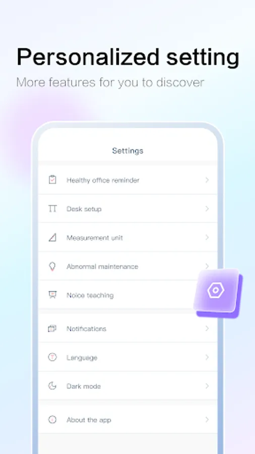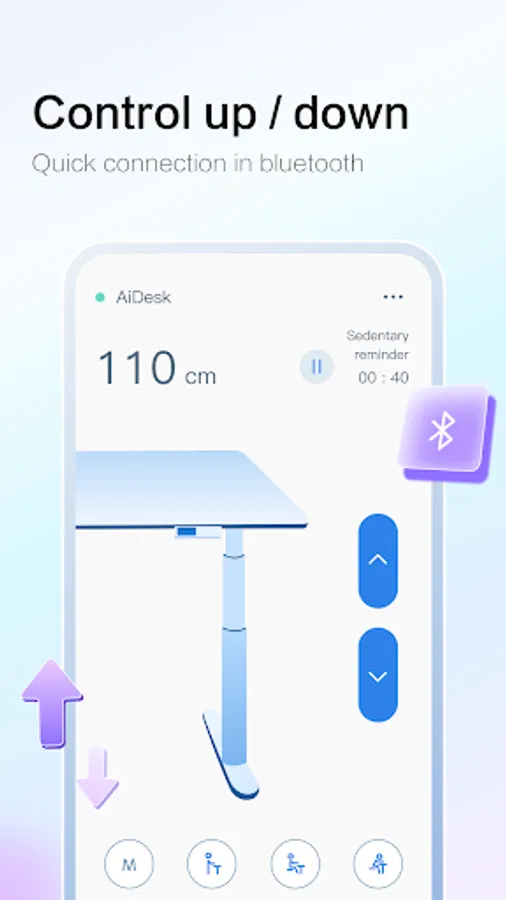 Being coordinated with intelligent hardware of desks, “AiDesk” is able to control the up & down of the desks, as well as setting memory height for common use. In the meanwhile, it can set sedentary reminder, and calculate calorie consumption, in order to satisfy the new requirement of intelligent office.
