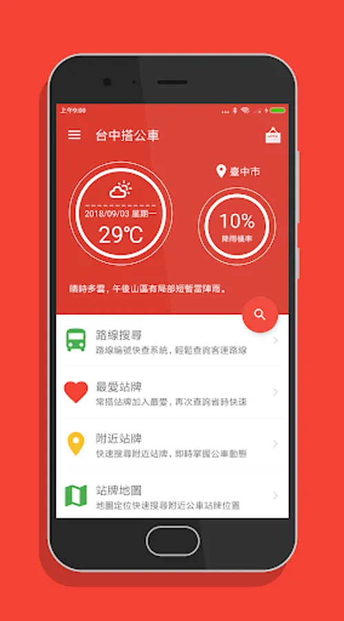 Weather information - Let you easily grasp the temperature and rainfall probability before going out!
