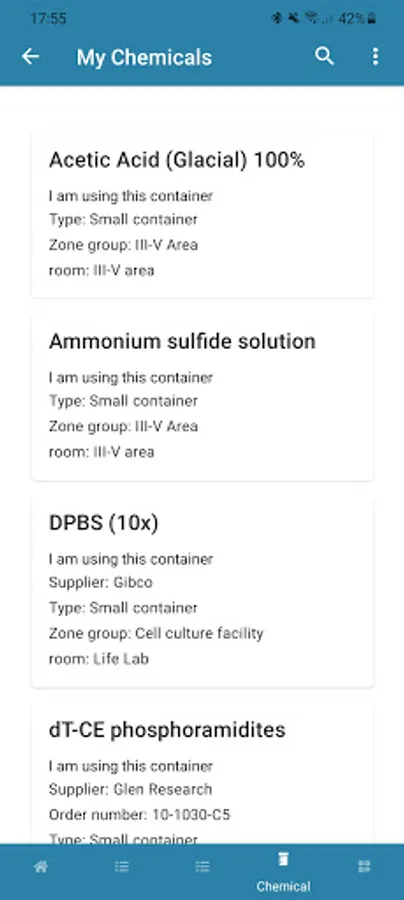 This app allows you to manage the chemicals and other features to ease the use of Equiage at imec
