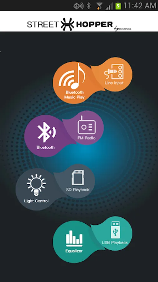 Using the Street Hopper Portable Bluetooth Speaker is more convenient than ever. With the Street Hopper app, you can play music from your device, switch from custom/preset lighting profiles, adjust equalizer levels, change FM radio stations and much more!
