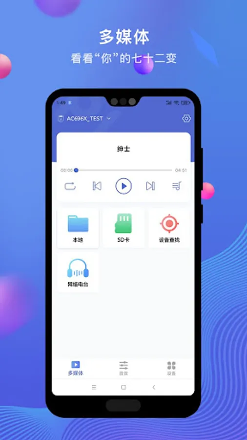 4. Speaker music playback (local music, external audio source, device music, ID3 music control)