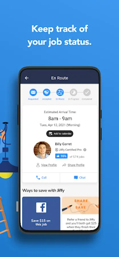 Get matched with a nearby pro - you’ll see their picture and rating
