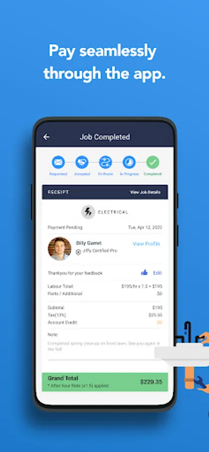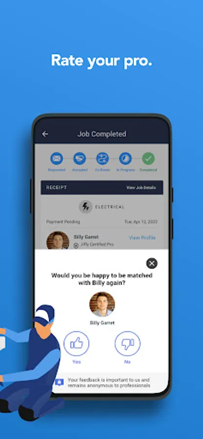 Rate your pro and get your receipt by email