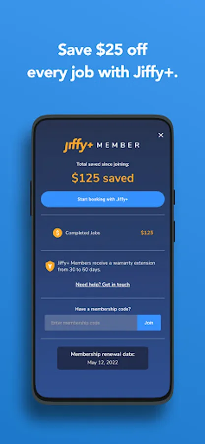 Become a Jiffy+ member and save on every job! Members get free stuff, extended warranty and more! It is the best way to keep your home in shape. Sign up for Jiffy+ when you book your next job.