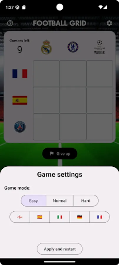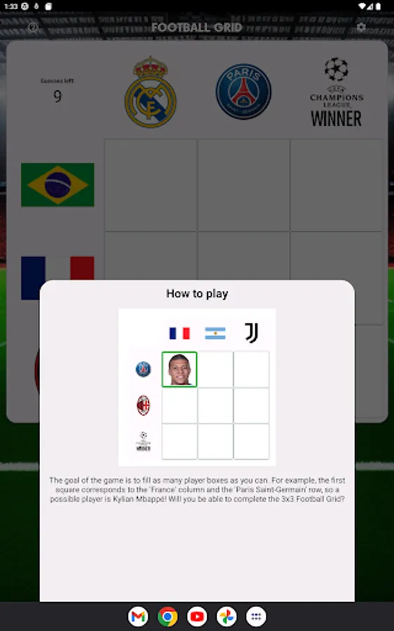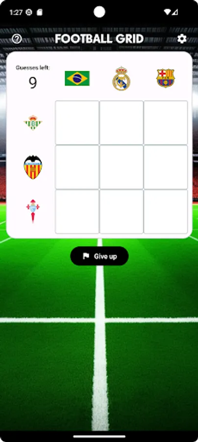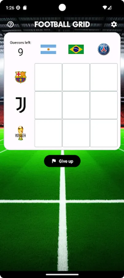 "Football Grid" is a captivating and casual soccer quiz game that puts your knowledge of the beautiful game to the test in a unique and engaging way. In this thrilling mobile experience, you'll find yourself immersed in a 3x3 grid filled with soccer players' names, where your mission is to guess the identities of these legendary players.