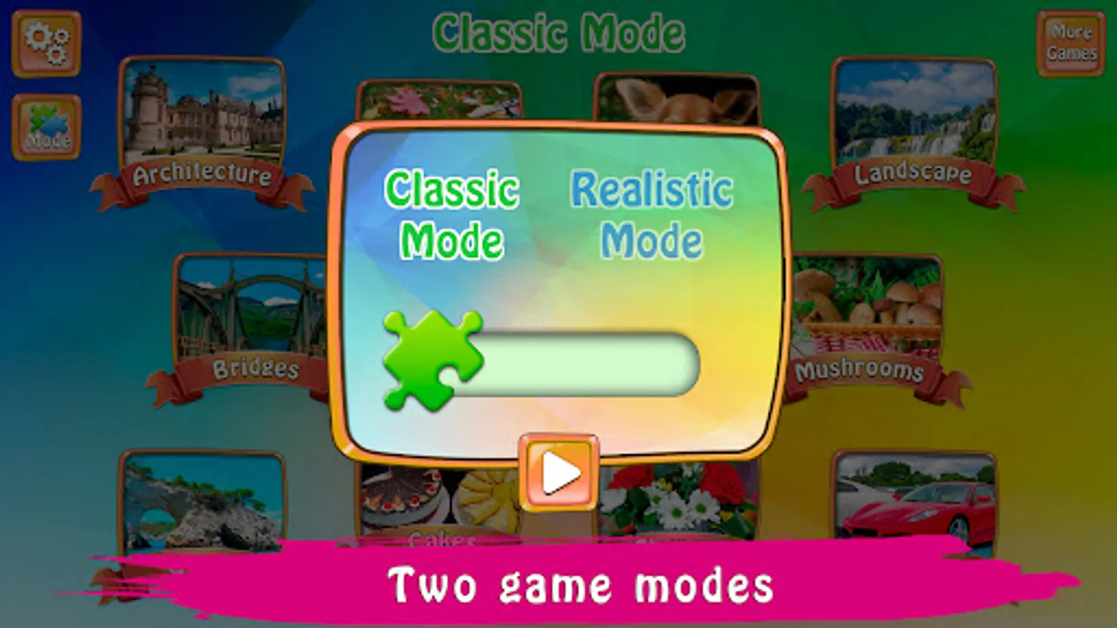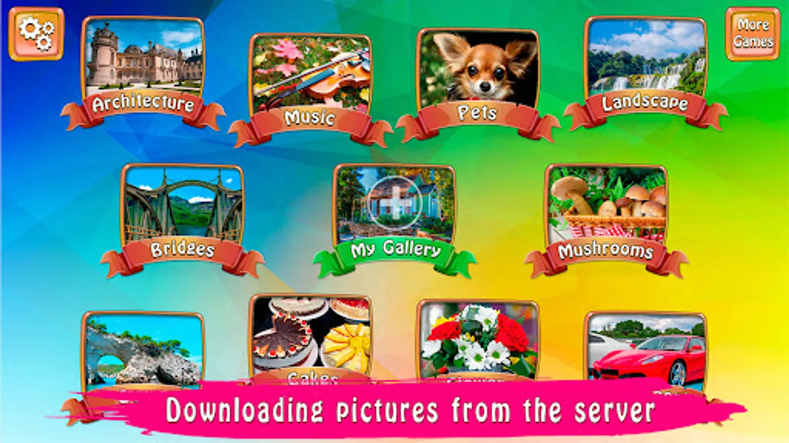 The puzzle games for adults has a huge gallery of pictures where everyone can find their favorite puzzle. And also, it is possible to add pictures from your device.