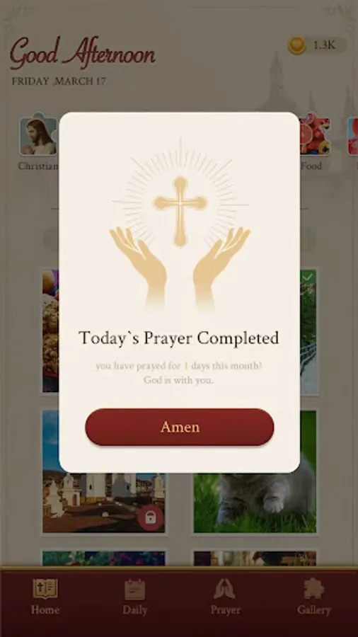Our carefully curated library boasts over a thousand stunning images, spread across 12 unique categories. To keep you engaged and inspired, we add new images daily, ensuring there's always something fresh to explore. As you complete your daily puzzle quota, you'll unlock the ability to engage in prayer, fostering a deeper spiritual connection.