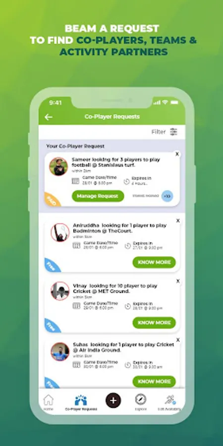 - Find co-players, opponents & team through broadcasting co-player request for your game