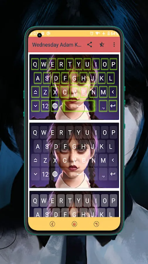 This app lets you fully customize your keyboard with a variety of elements inspired by Wednesday Addams, including her signature white collar and black dress, gothic patterns and motifs, and creepy-cute icons like bats and spiders. Choose from different font styles and colors to match your mood and personality.