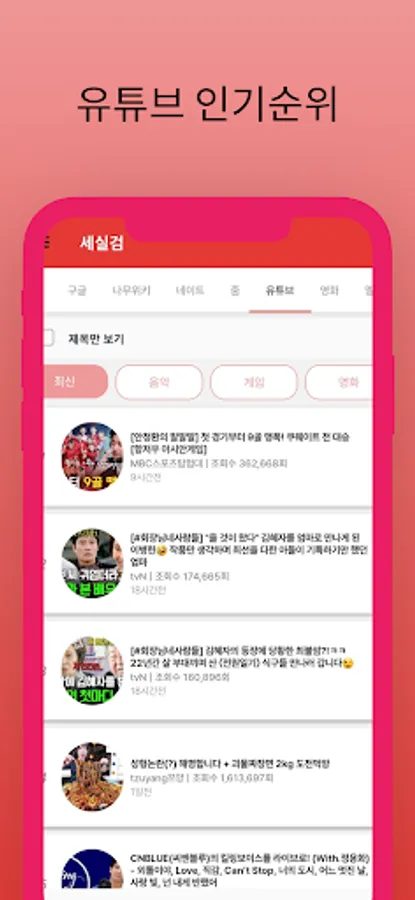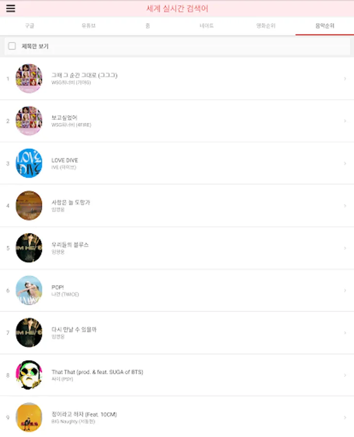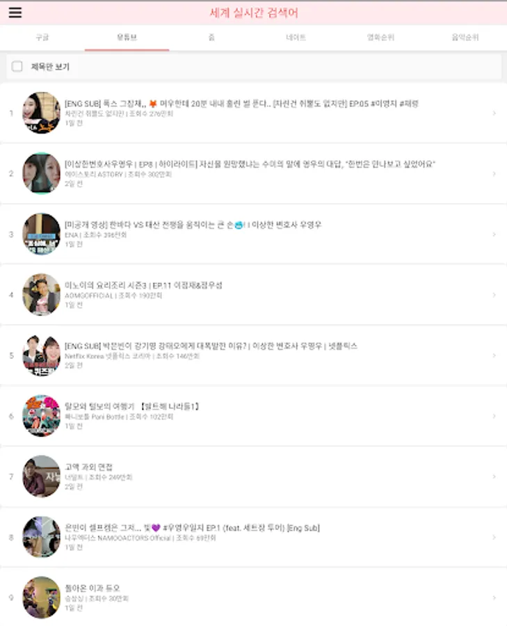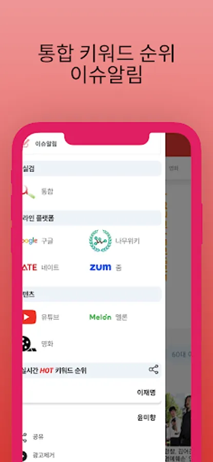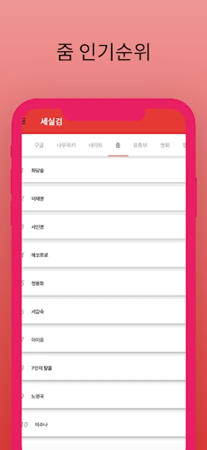 You can immediately find out the rankings of Namu Wiki, Google, YouTube, Zoom, Nate, movies, and music.