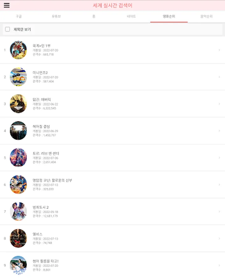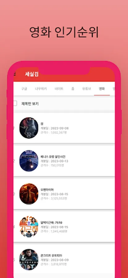You can see movie rankings, release dates, number of viewers, and posters.