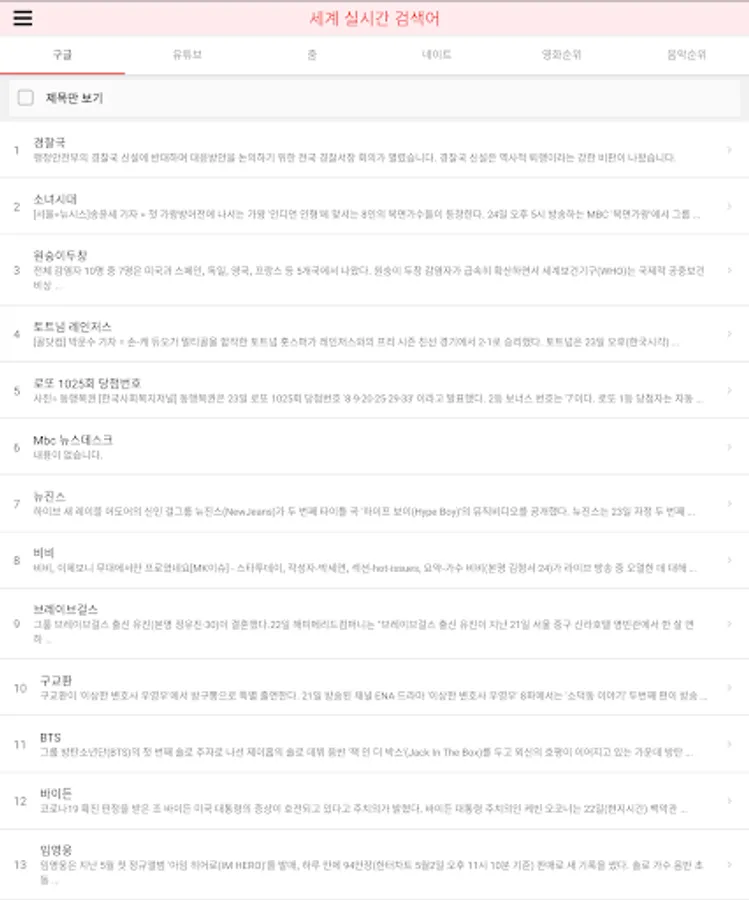 Find out real-time search word rankings easily and conveniently in this day and age where it is difficult to know trends these days.