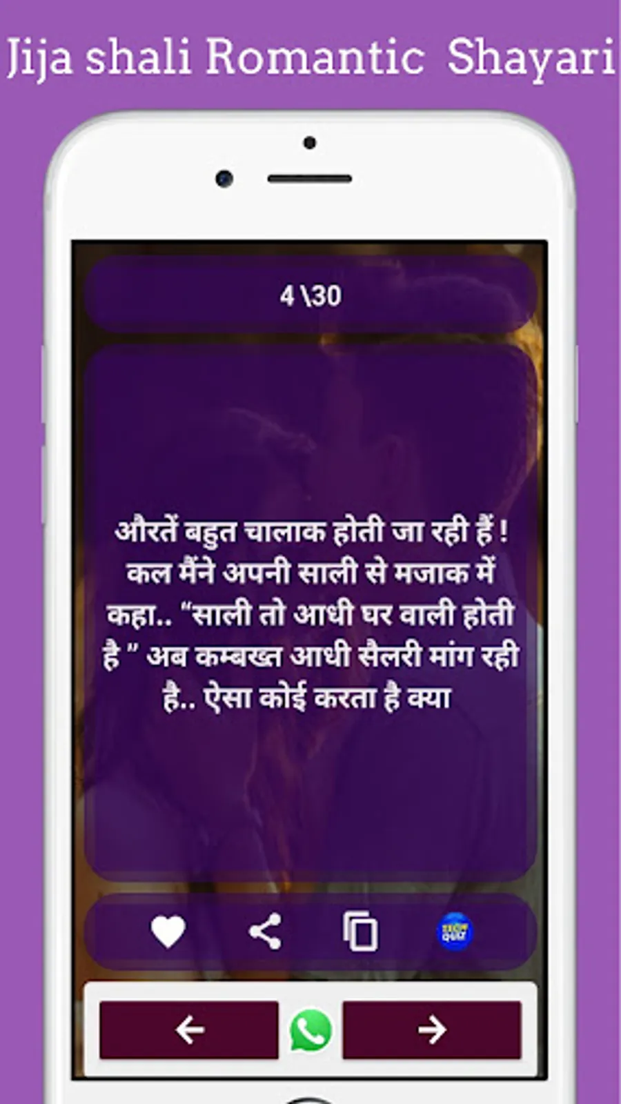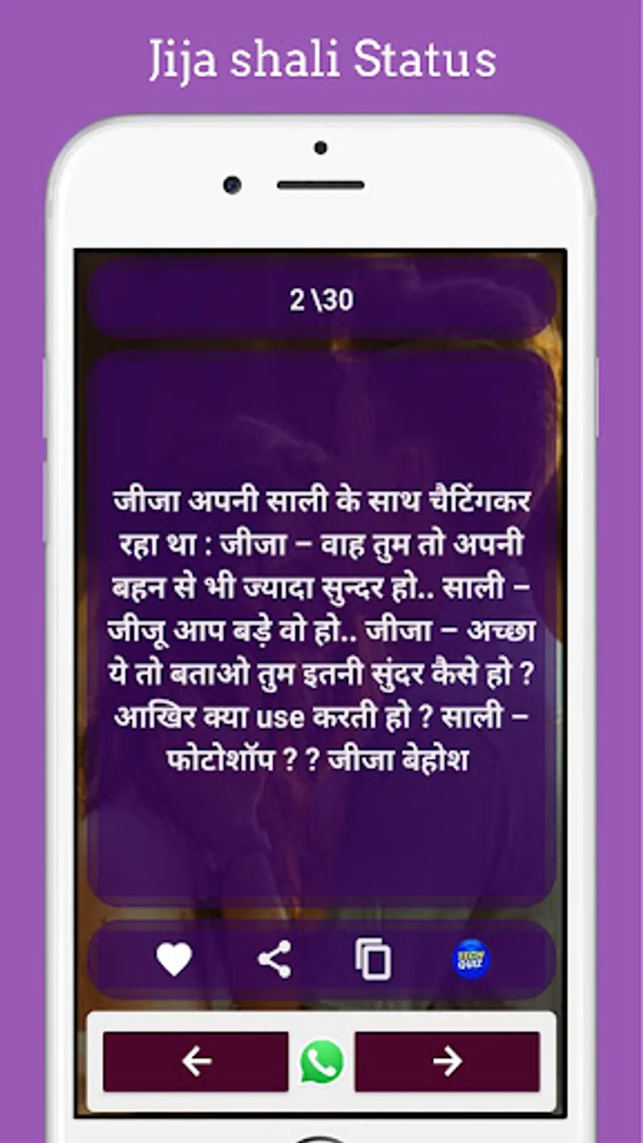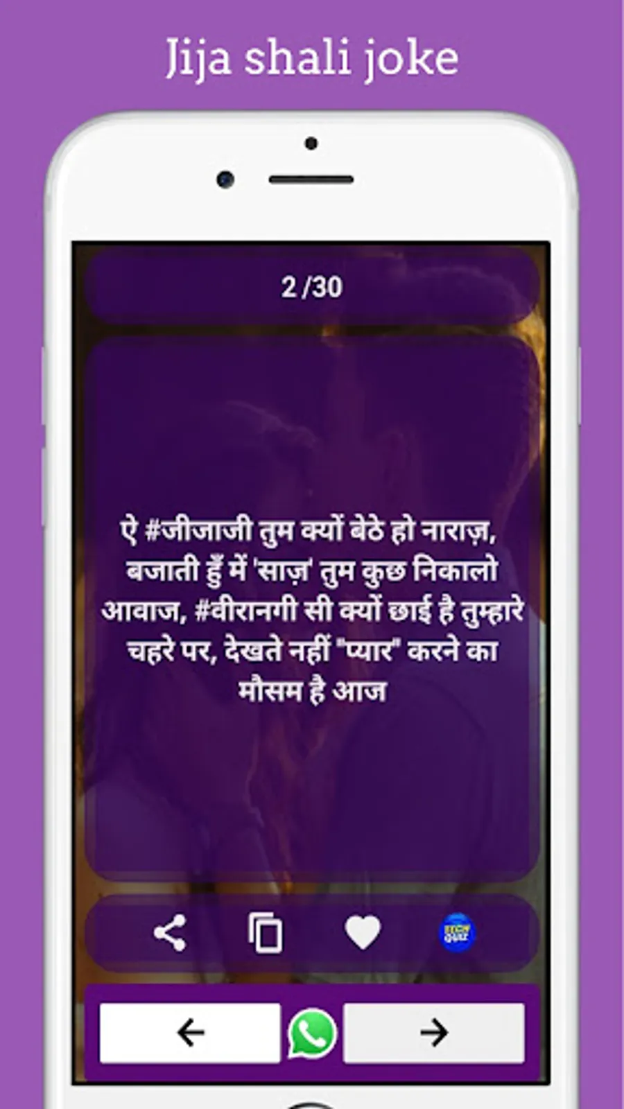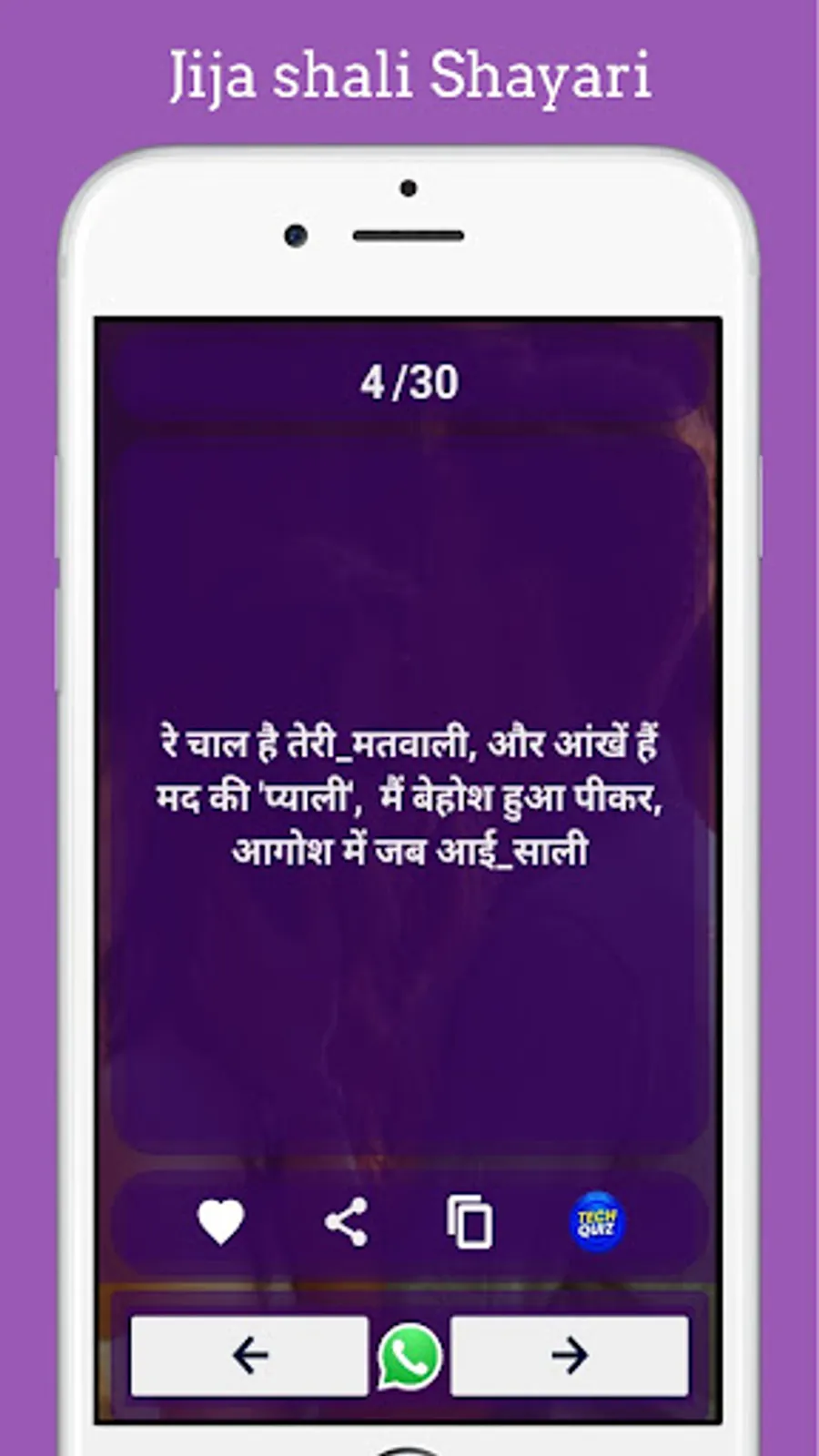 Very easy to use interface just next and right to read the beautiful Jija Sali Shayari in Hindi and easy share to your friends.